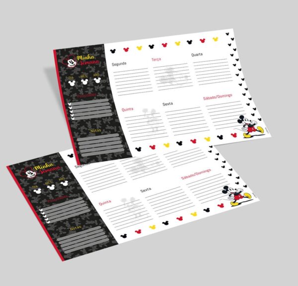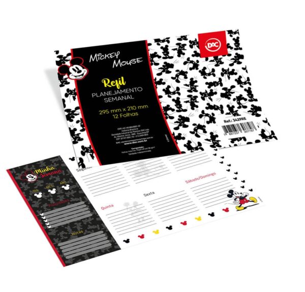 O refil para prancheta é ideal para reposição, conta com espaço para prioridades gerais da semana, individualmente de cada dia, notas e muita animação com o personagem mais carismático do mundo mágico da Disney, o Mickey.